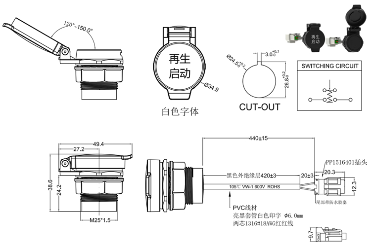 DSH系列收割機(jī)開關(guān),通過高低溫測(cè)試;防塵防震動(dòng),TUV:IP68防水等級(jí);根據(jù)要求印制