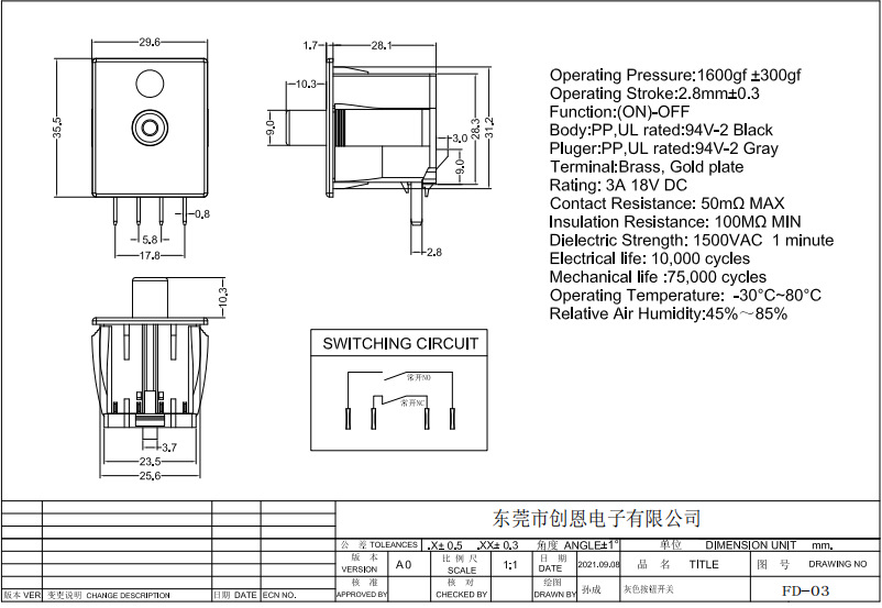 創(chuàng)恩22mm IP67防水型大頭金屬按鈕開關