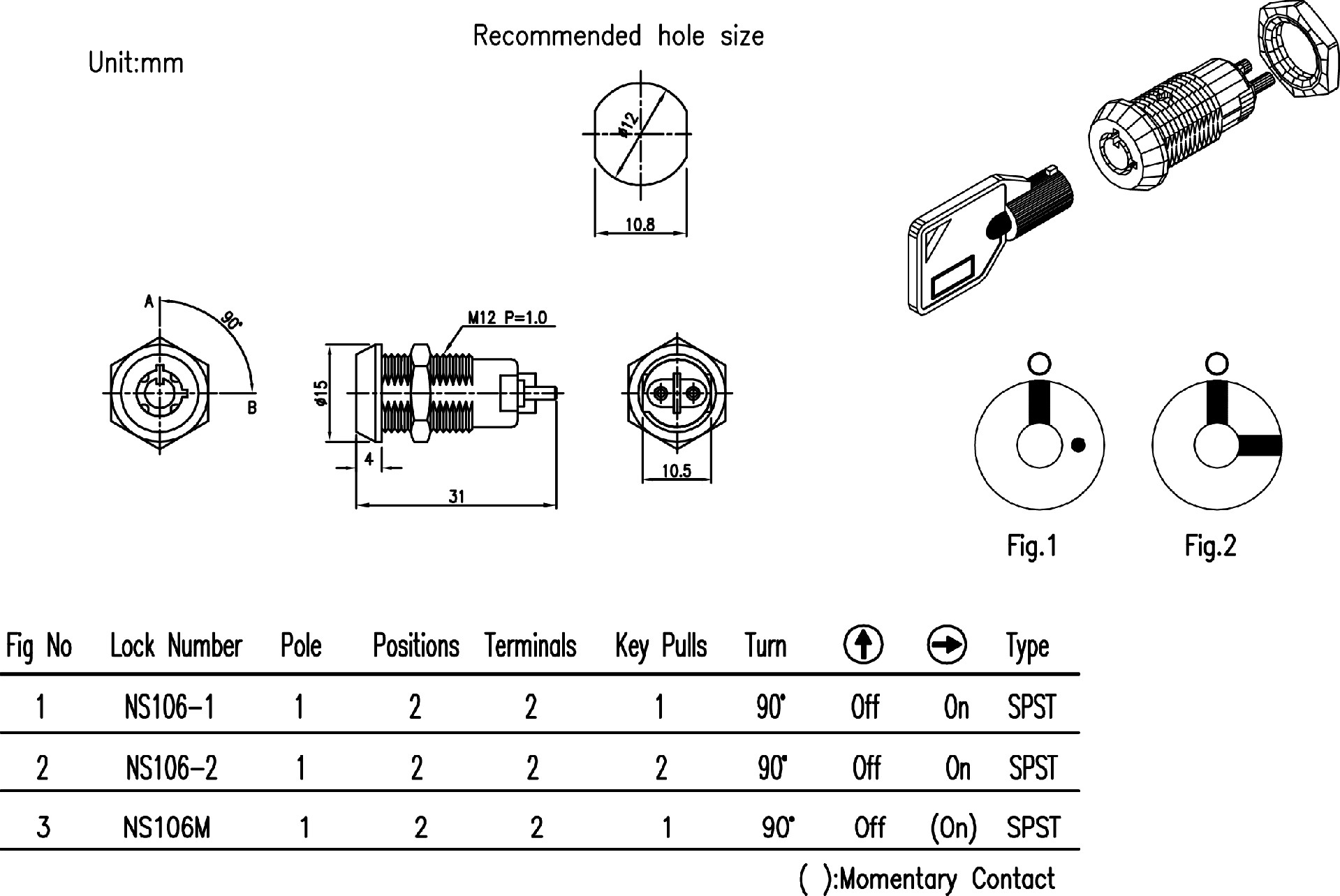 . NS106M 2 位(關(guān)-開)2 端子彈簧加載