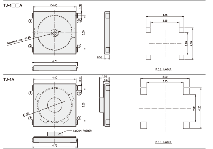 使用壽命:260/200gf 500000cycles, 160/100gf 1000000